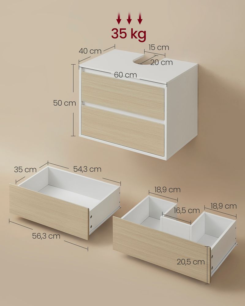 Meuble Sous-Lavabo Suspendu – Armoire de Salle de Bain avec 2 Tiroirs – Gain de Place