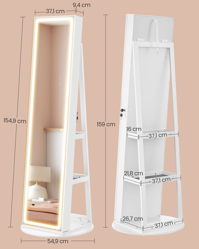 Armoire à bijoux avec miroir LED - Miroir sur pied avec rangement