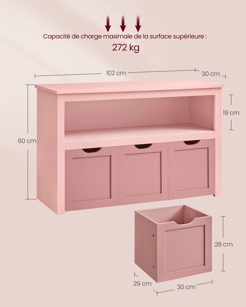 Créez un environnement ordonné et sécurisé pour vos enfants. Alliez fonctionnalité et style avec ce rangement astucieux ! Attention : Ne convient pas pour grimper ou jouer.
