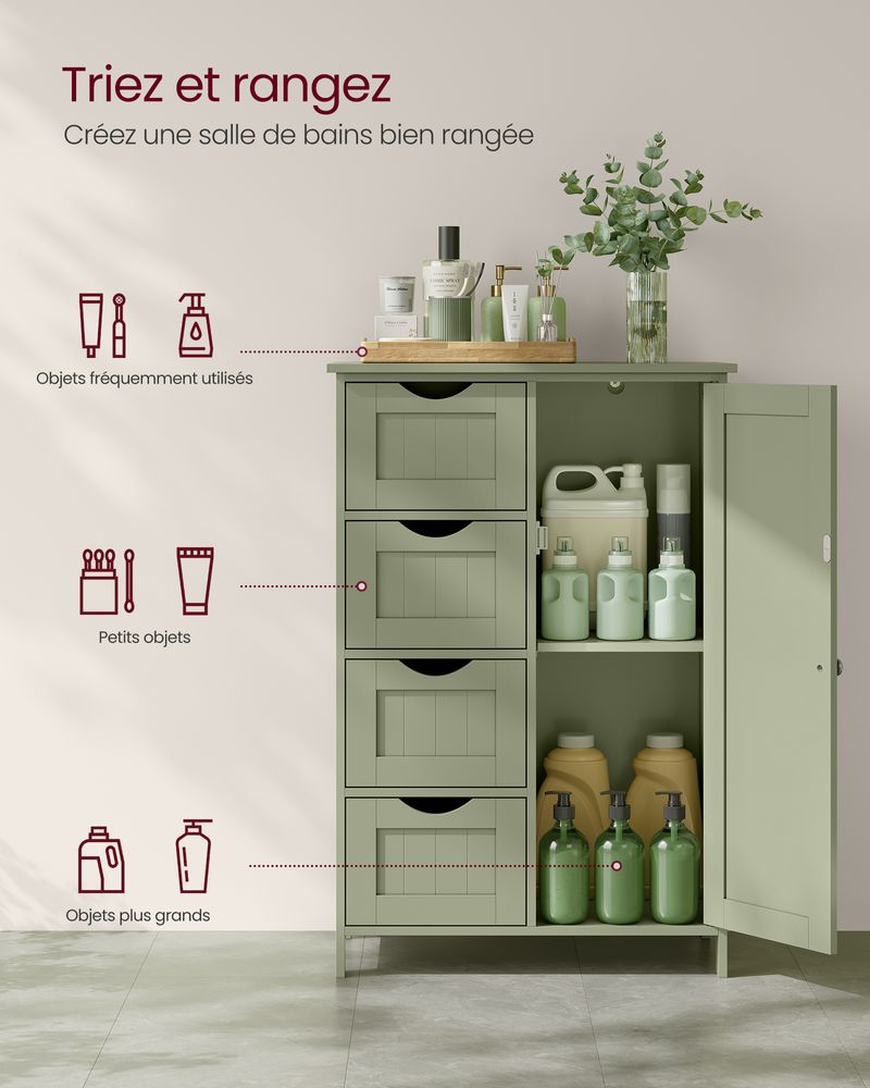 ✅ 1 x Armoire de rangement avec tiroirs et porte