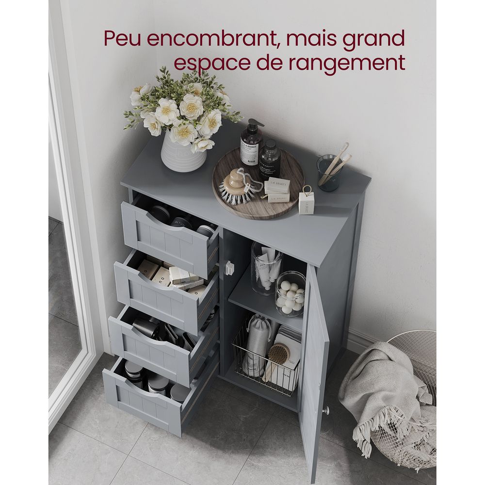✔ Système de rangement intelligent – 4 tiroirs profonds et un compartiment avec porte pour une salle de bain organisée