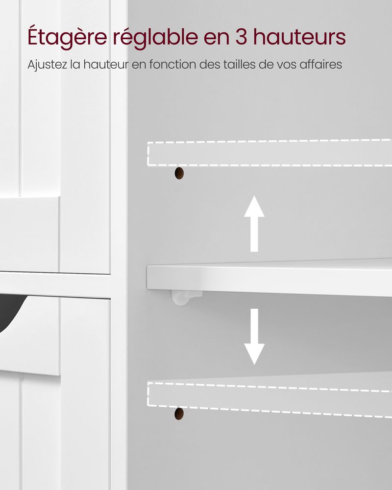 ✔ Planches ajustables – Étagère intérieure réglable sur 3 niveaux pour adapter l'espace de rangement aux différents articles