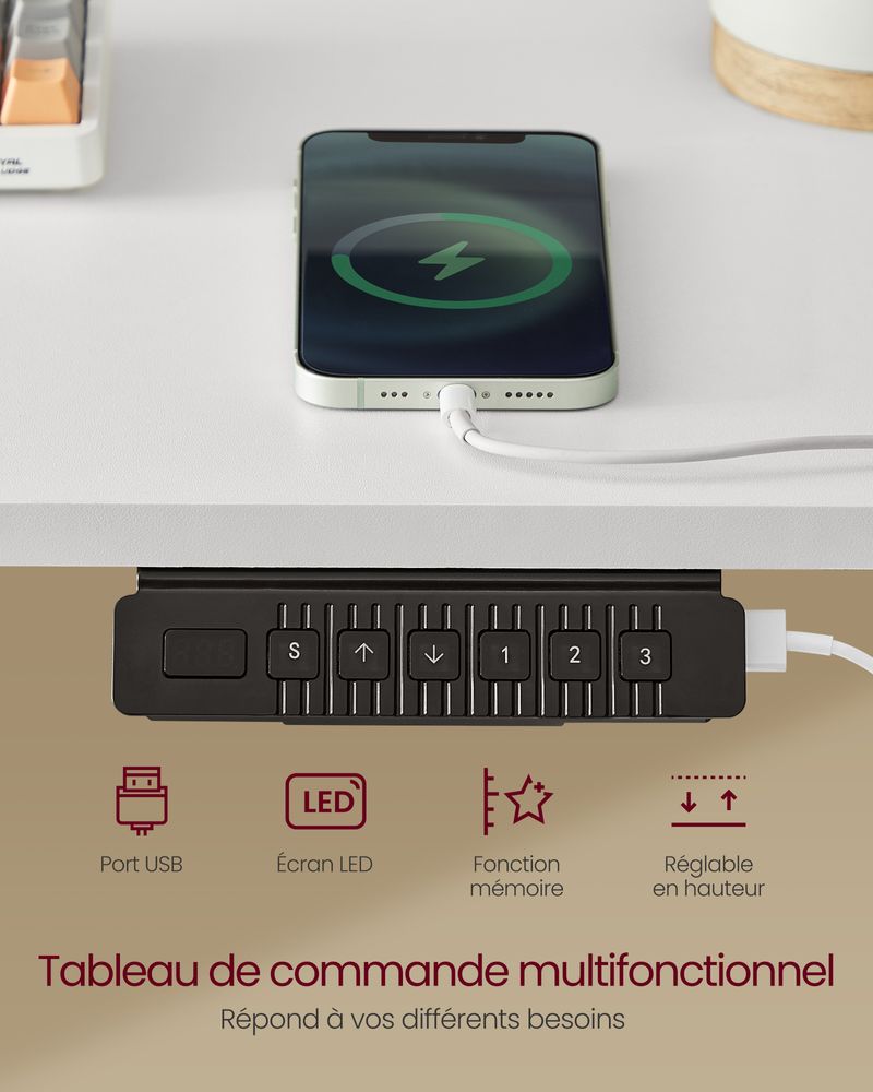 🛒 Créez un espace de travail ergonomique et performant avec ce bureau électrique réglable. Commandez dès aujourd’hui et profitez d’un confort optimal au quotidien !