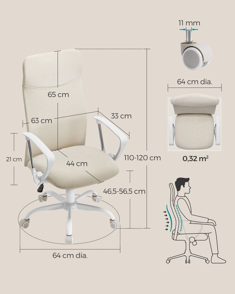 ✅ Revêtement doux et respirant : Le tissu offre une assise agréable sans les inconvénients du cuir synthétique ou du mesh. L’assise rembourrée de 7 cm garantit un confort durable.