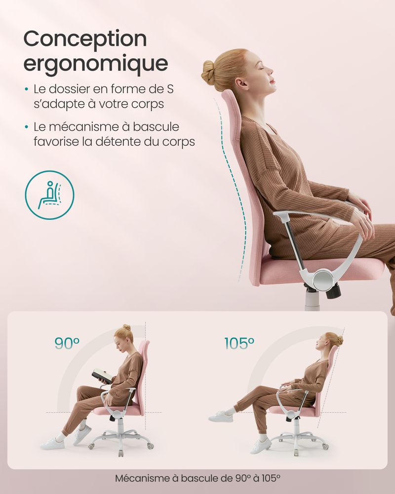 ✅ Design ergonomique : Le dossier est conçu pour réduire la tension au niveau du cou, des épaules et du dos, idéal pour les longues journées de travail.