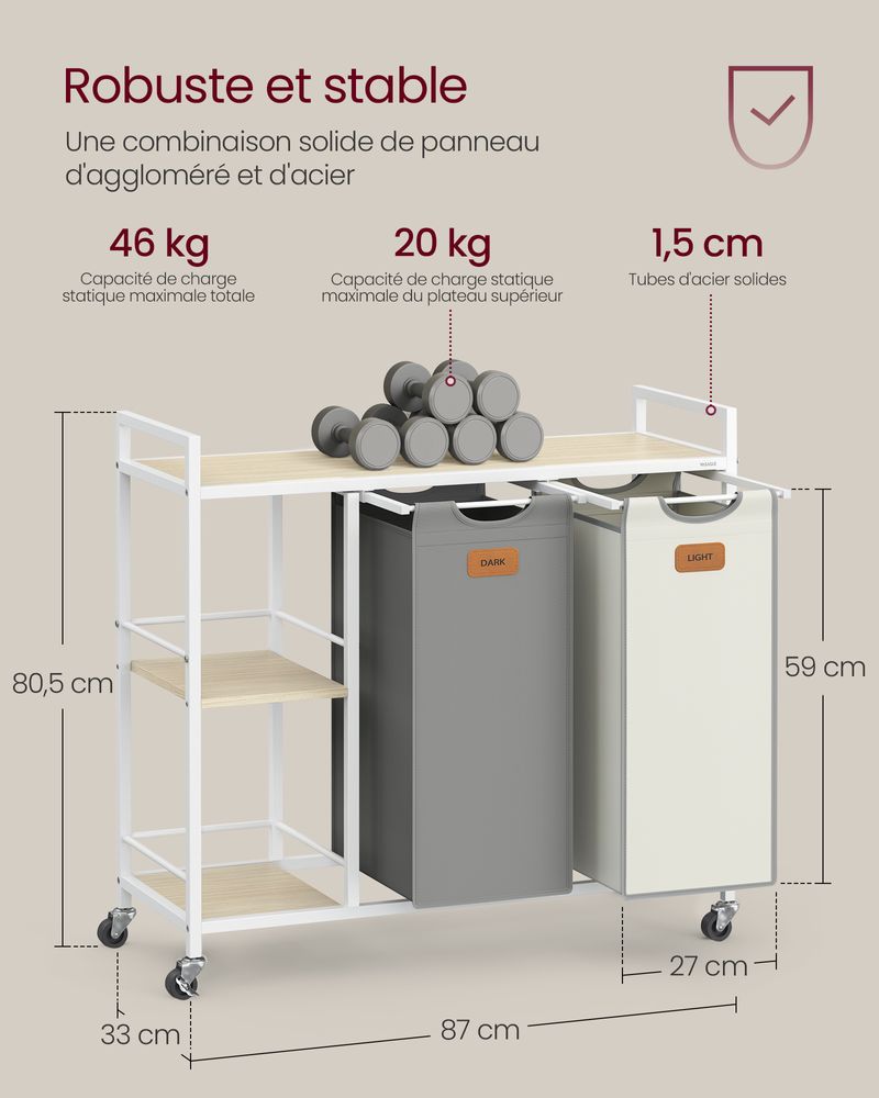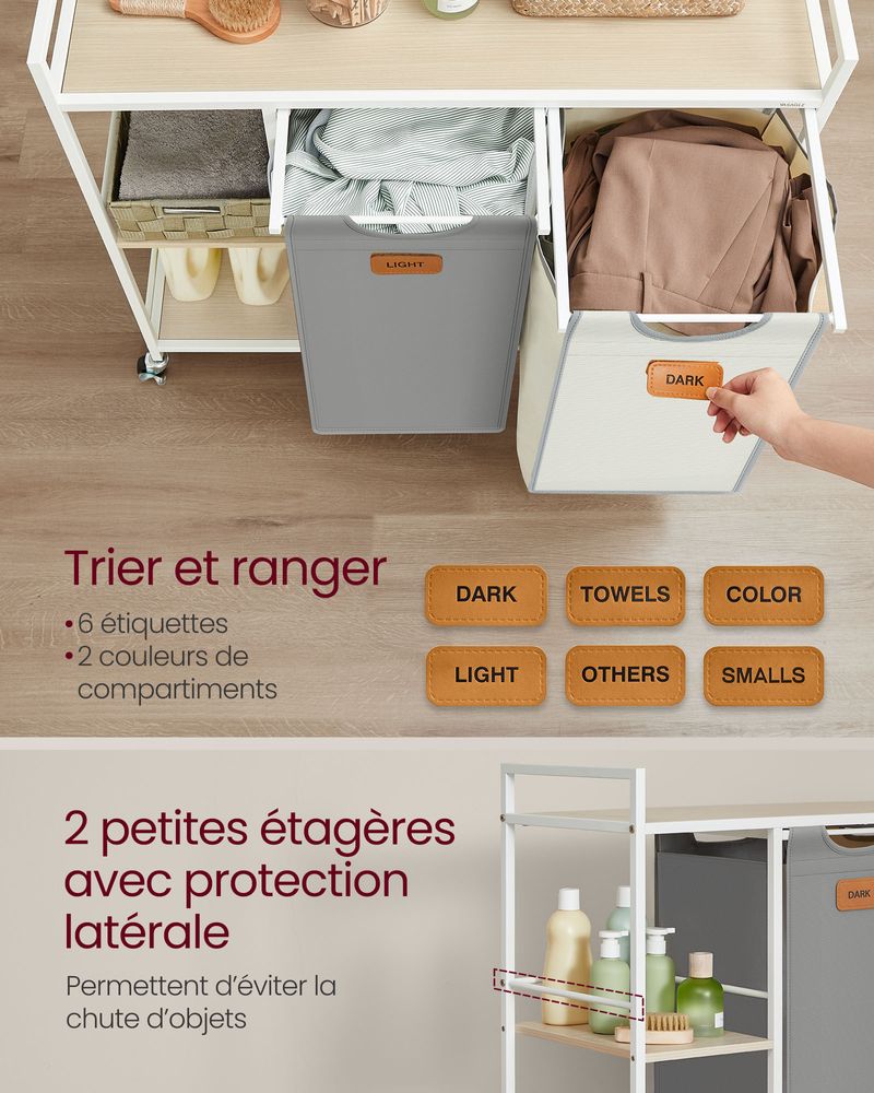 Avec ce chariot pratique, gardez votre buanderie organisée et facilitez le tri du linge au quotidien !
