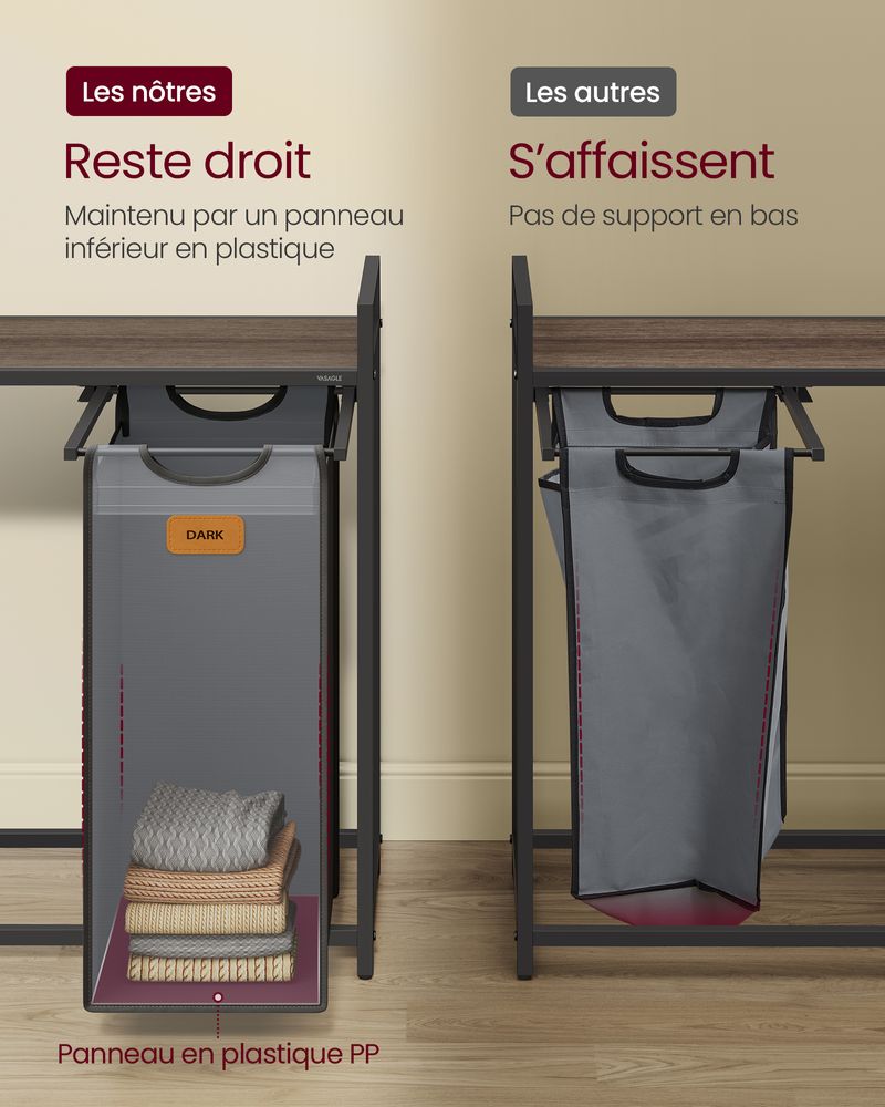 Grâce à son design astucieux avec trois paniers et des espaces de rangement supplémentaires, trier et stocker votre linge devient un jeu d'enfant. Une solution idéale pour un lavage plus efficace !