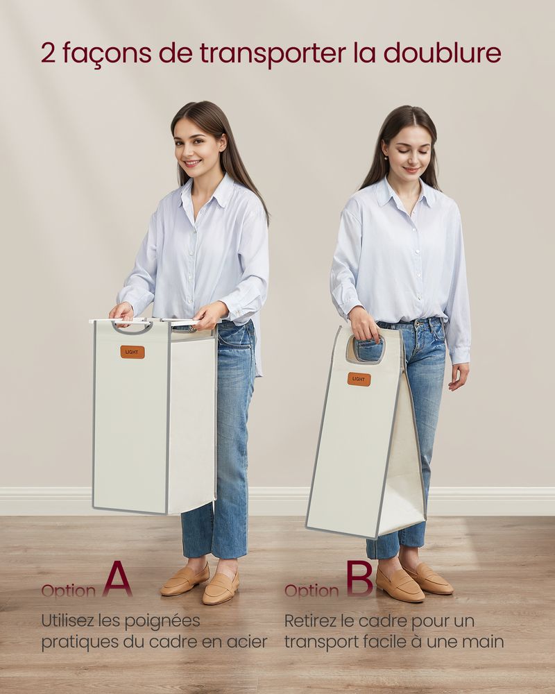 ✅ Tri facilité : Les 6 étiquettes incluses permettent d'organiser le linge par couleur ou type. Grâce aux attaches Velcro, elles se fixent et se changent facilement. Les paniers de différentes couleurs rendent le tri encore plus intuitif.