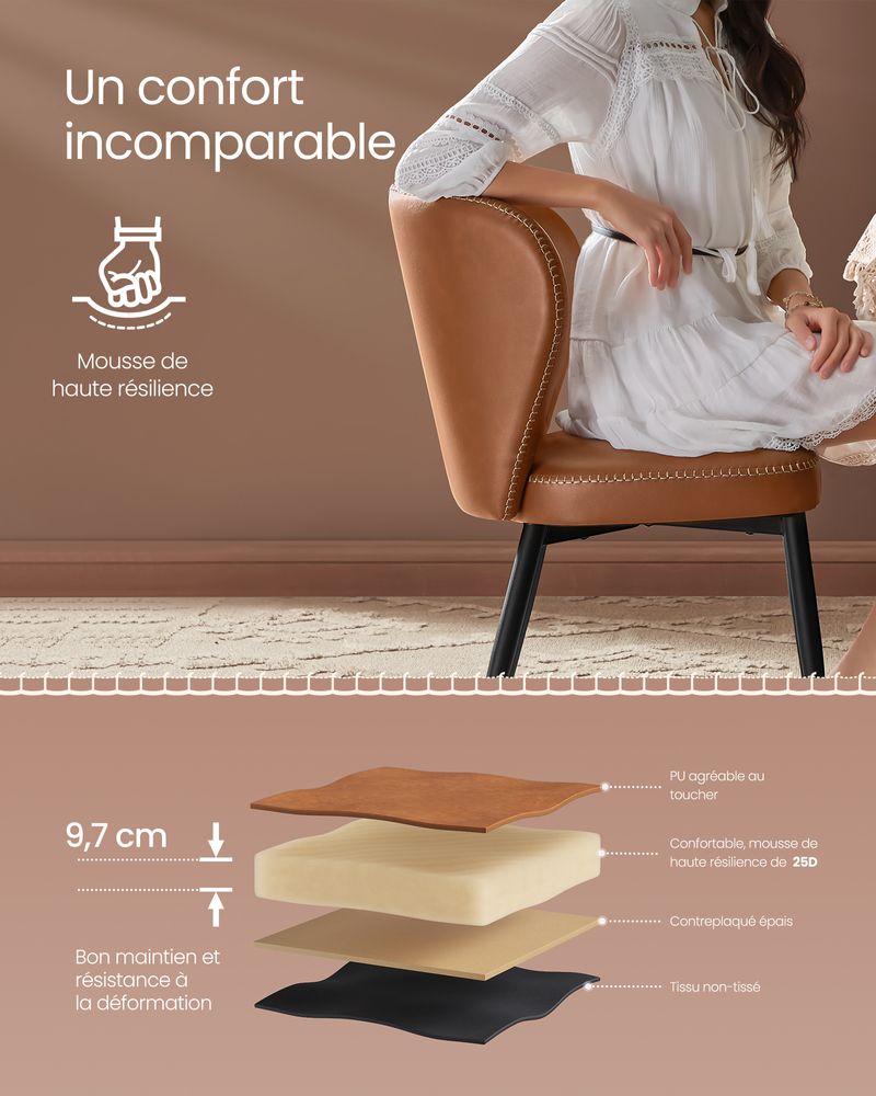 - Matériaux : Pieds en métal, revêtement doux, rembourrage en mousse