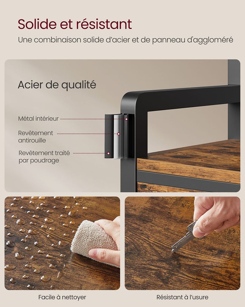 ✔ Construction robuste en acier et panneaux de particules