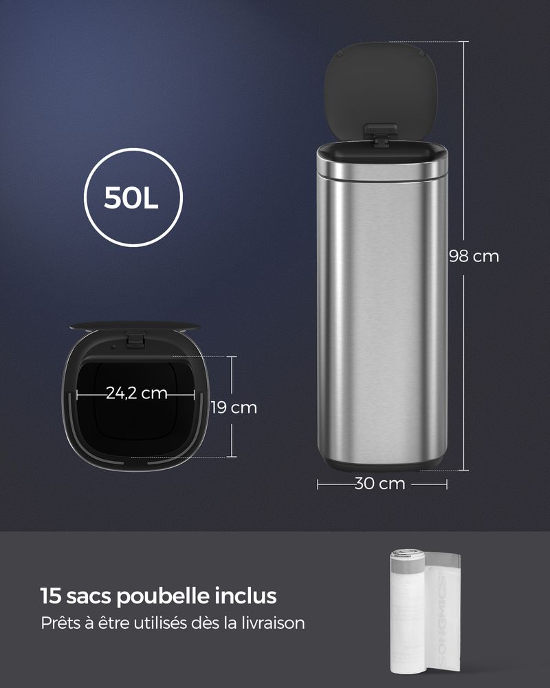 Poubelle intelligente avec capteur 50L - Poubelle compacte