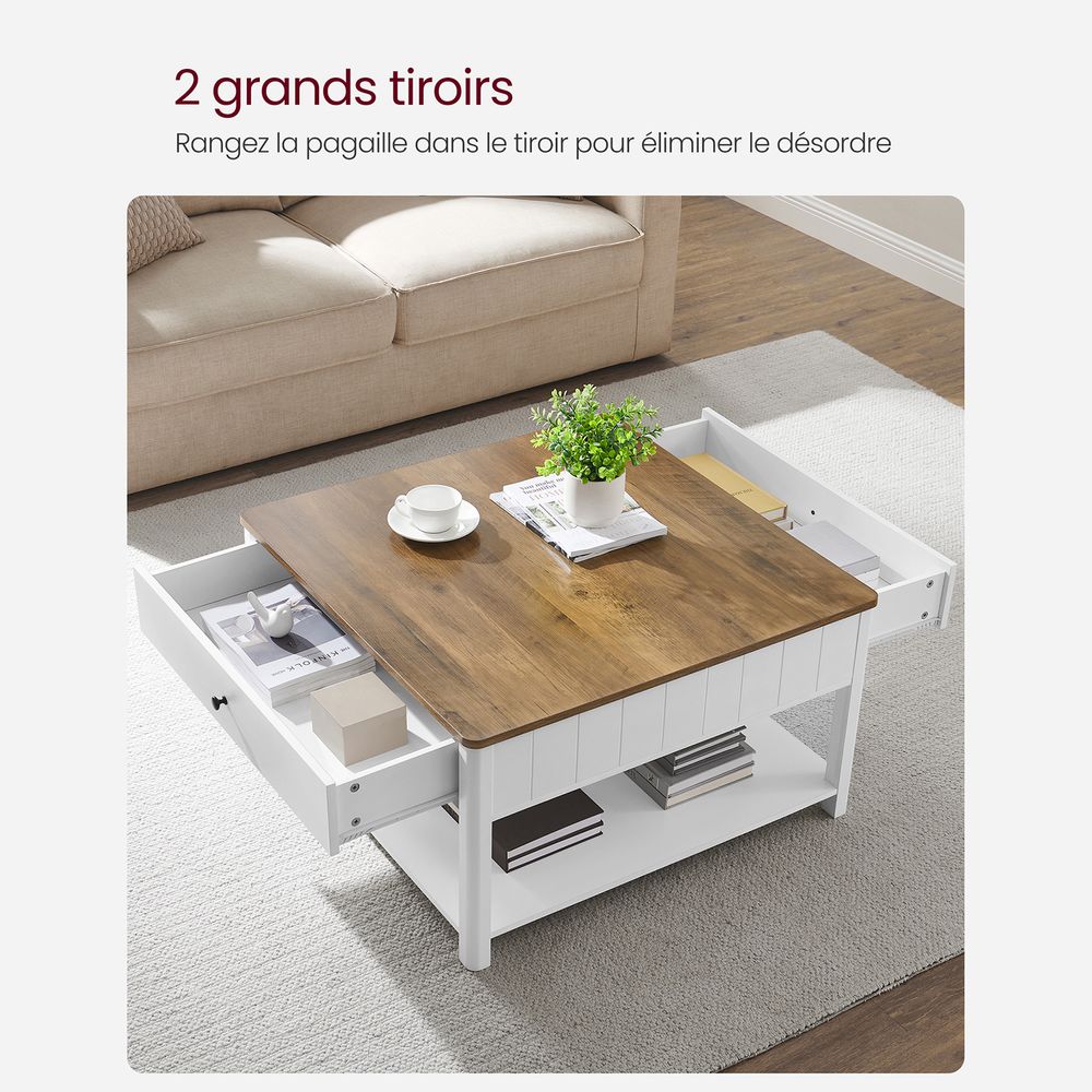 🗄️ Organisation spacieuse – Dites adieu au désordre grâce à deux grands tiroirs à coulissement fluide. Rangez vos télécommandes, magazines et bien plus pour un espace toujours bien ordonné.