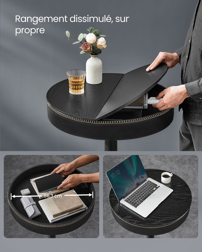 Table de Bar avec Rangement - Hauteur Réglable (83-105 cm) - Table de bar ronde