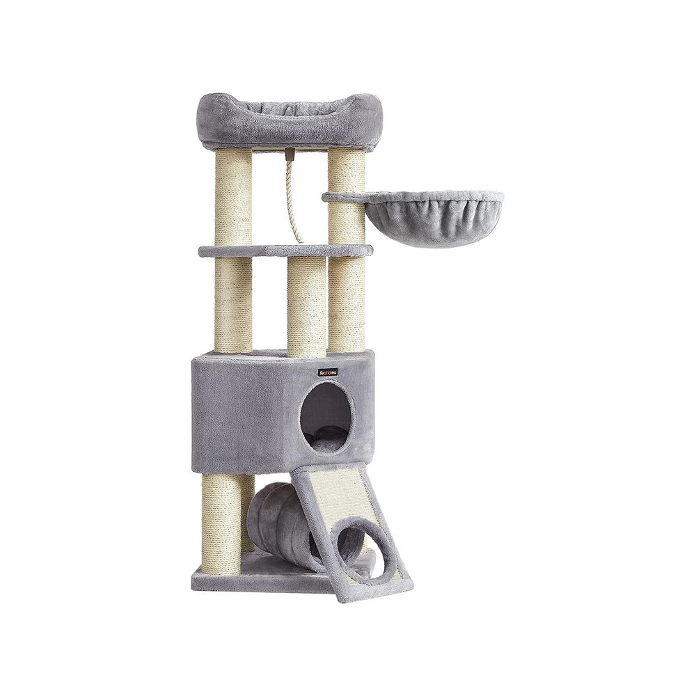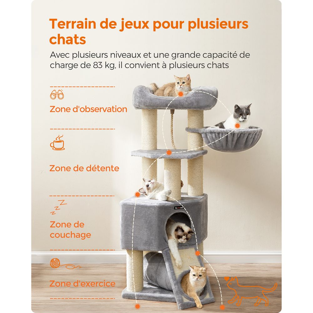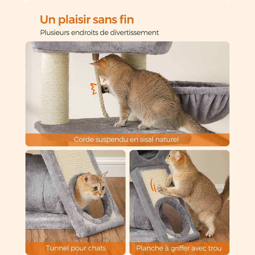 Arbre à Chat avec Tunnel de Jeu - Tour pour Chat avec Hamac - Griffoir avec Plateformes en Peluche