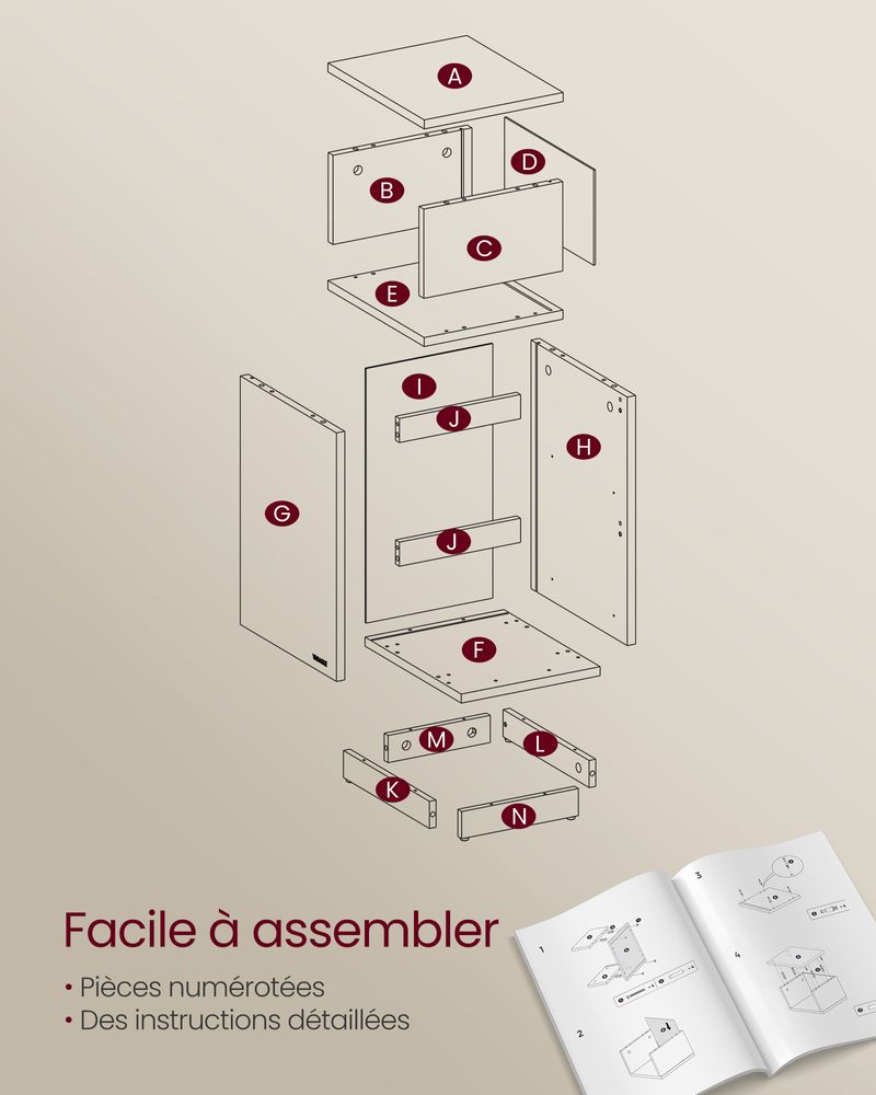 [Solide et stable] Fabriqué en MDF de haute qualité et en panneaux de particules, avec une capacité de charge allant jusqu'à 45,4 kg pour le plateau supérieur.