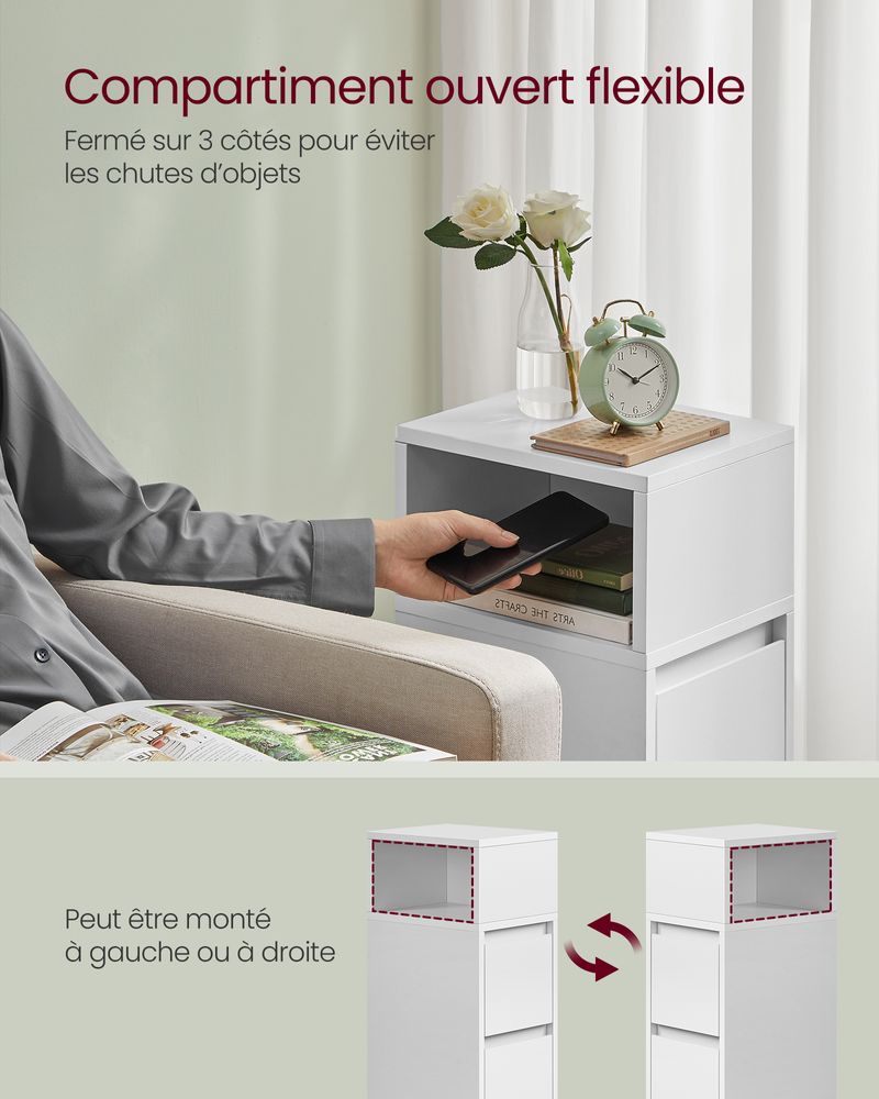 Chevet étroit avec compartiment ouvert modulable - Table d’appoint