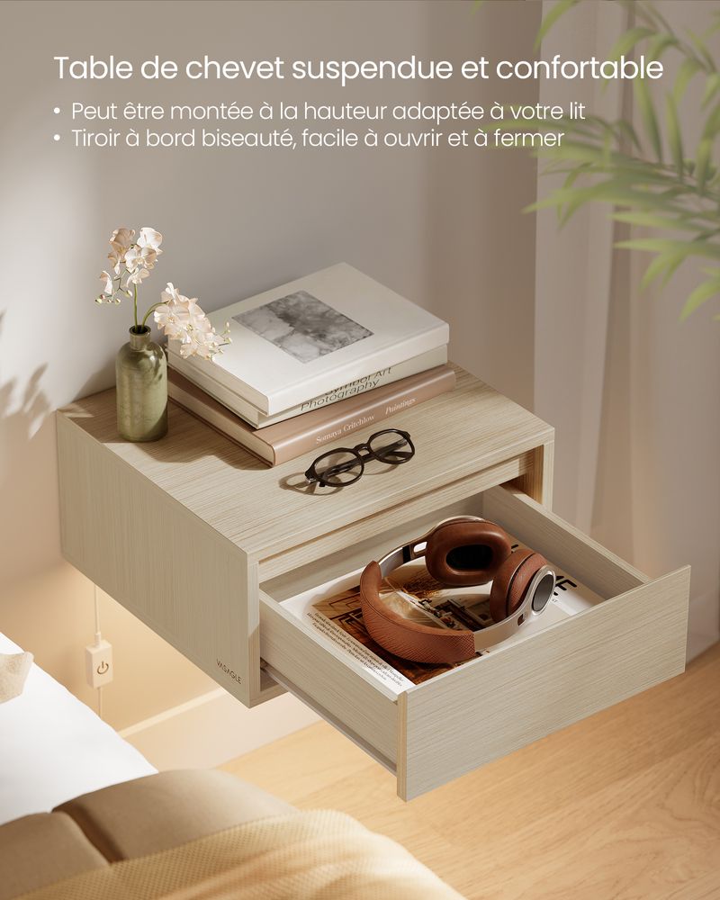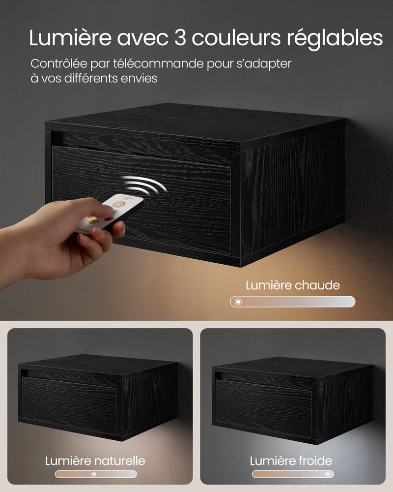 Table de nuit suspendue avec éclairage LED - Minimaliste et fonctionnelle