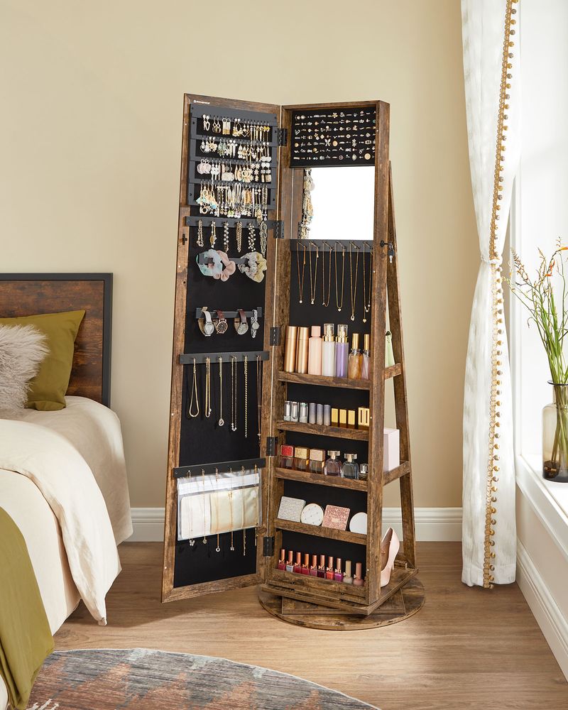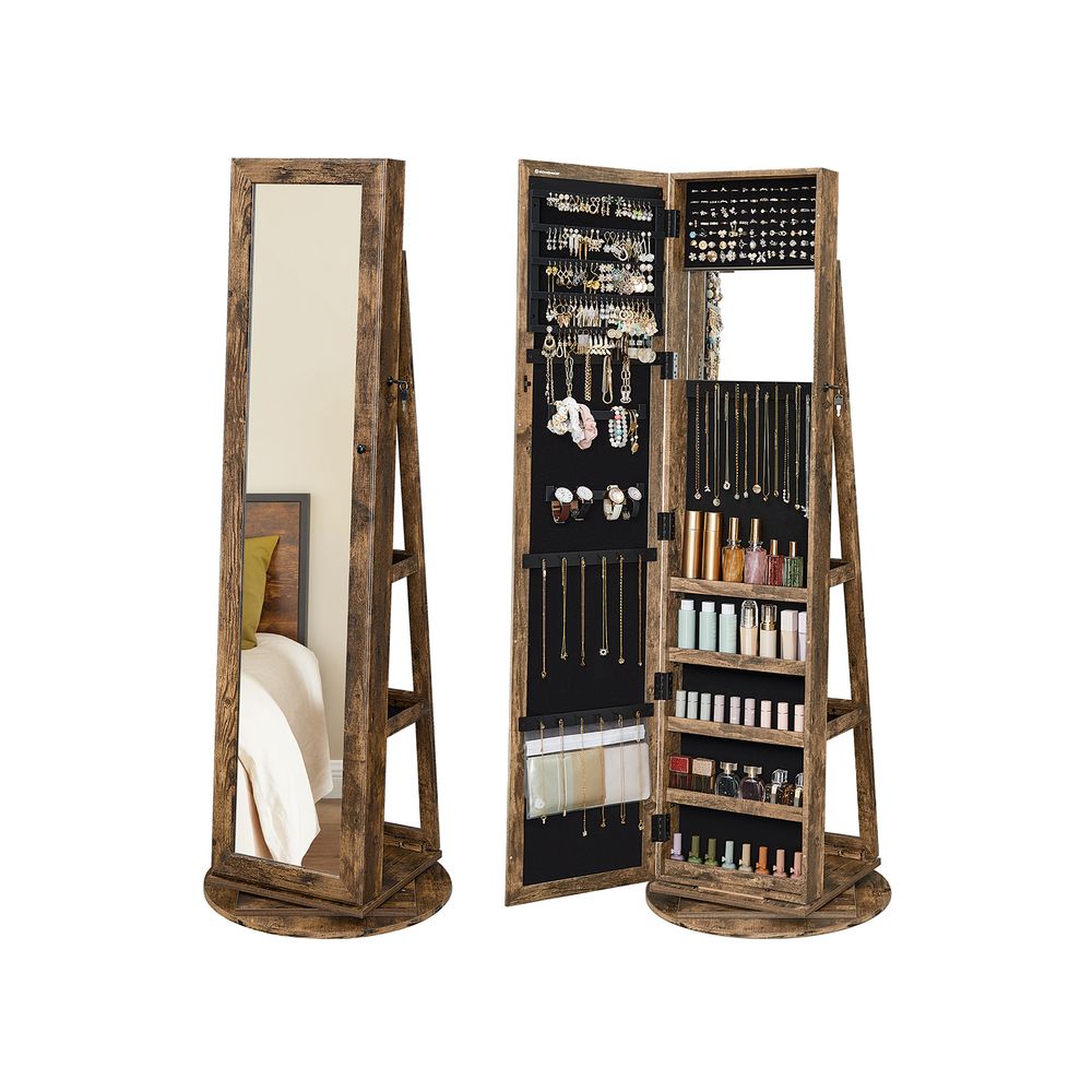 Armoire à Bijoux Pivotante 360° avec Miroir et Verrou