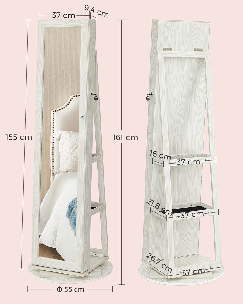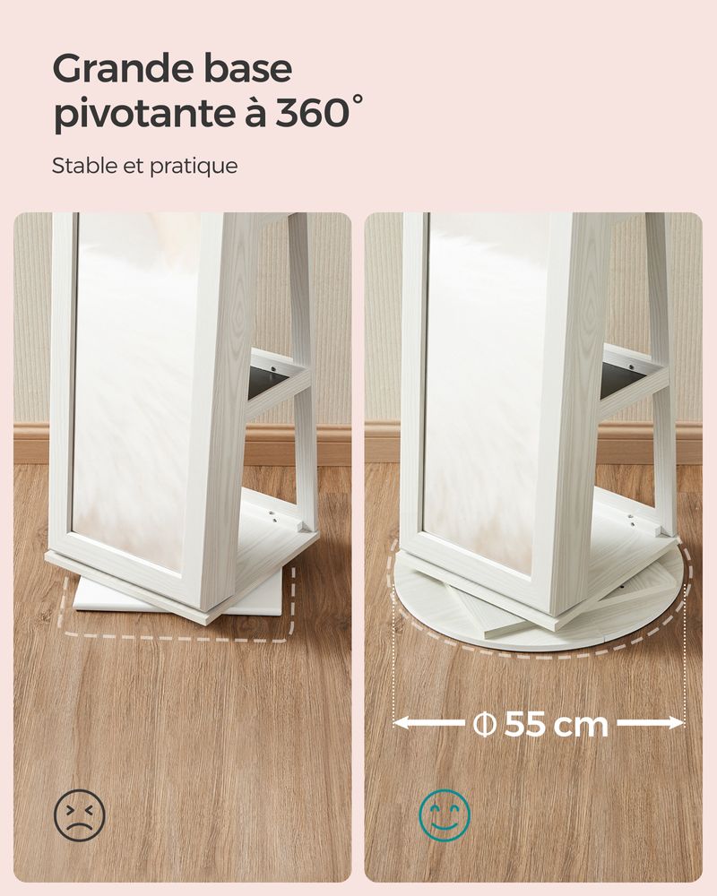 Associez élégance et praticité avec cette armoire à bijoux pivotante à 360°.