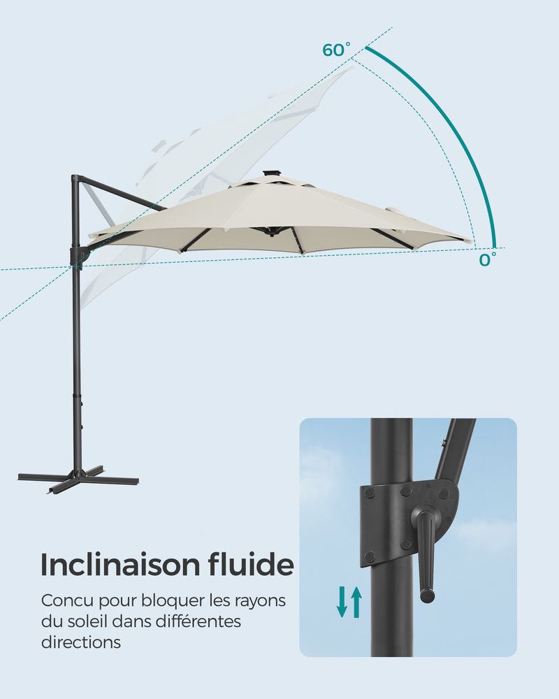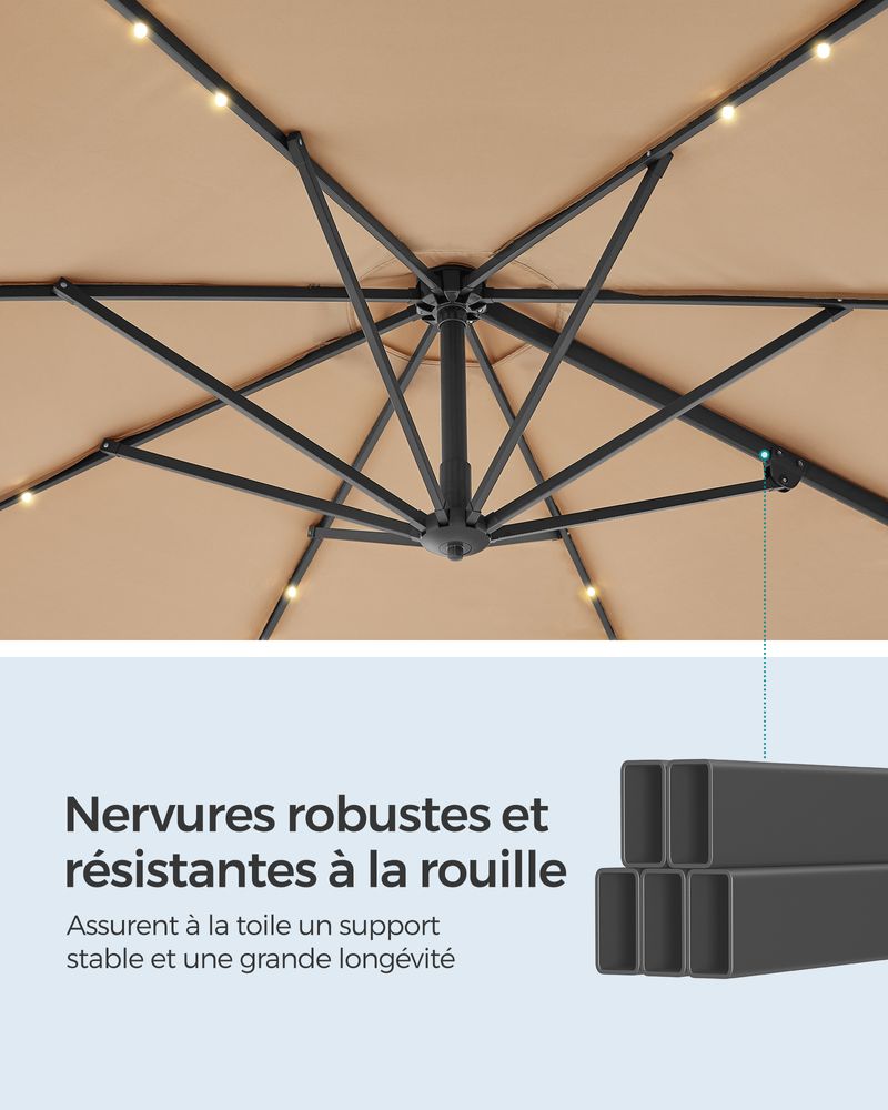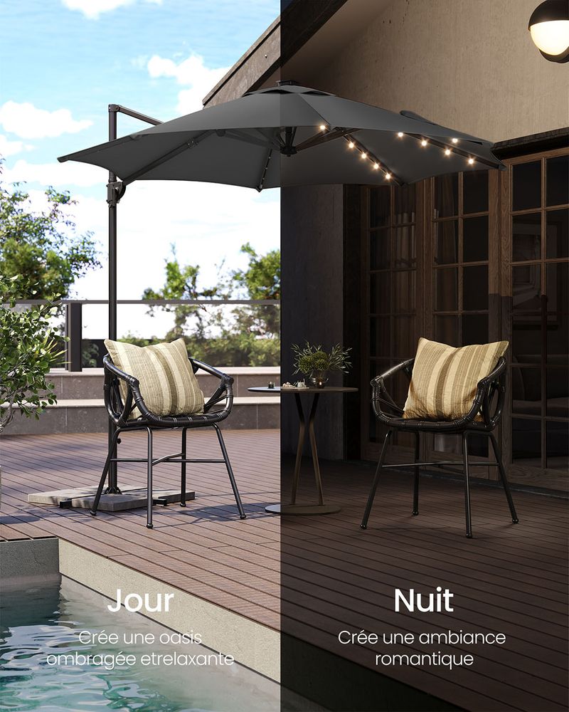 Redécouvrez la détente avec cette magnifique Parasol LED Solaire - l'élément central élégant de votre jardin !