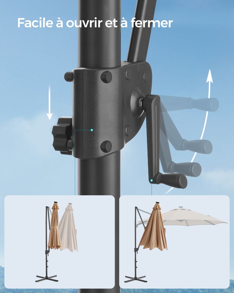 Parasol Suspendu Rotatif avec Manivelle - Éclairage LED - Ø 300 cm - Pivotant à 360°