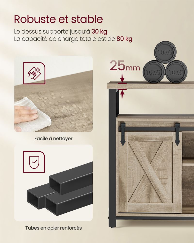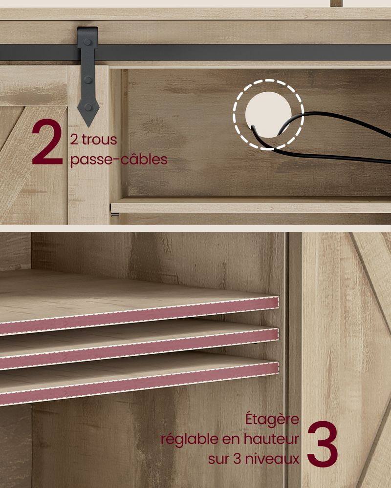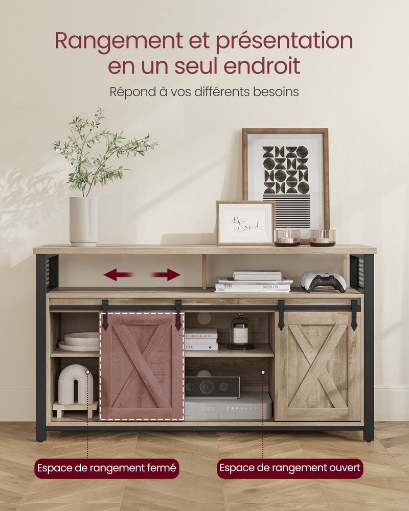 Meuble TV de Style Champêtre avec Portes de Grange – Stable & Spacieux pour Téléviseurs jusqu’à 60”